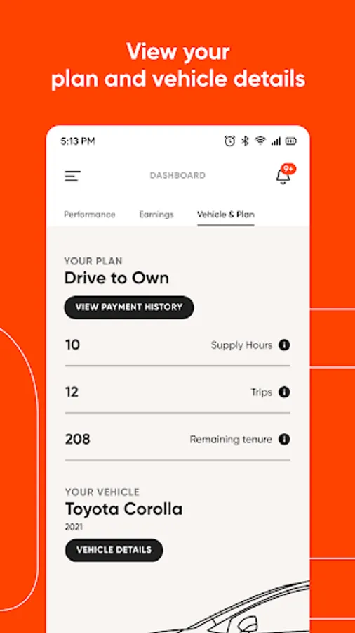 Vehicle and Plan Information: Find all the information about your vehicle, including the type of vehicle, the plan you are on and the plan targets.