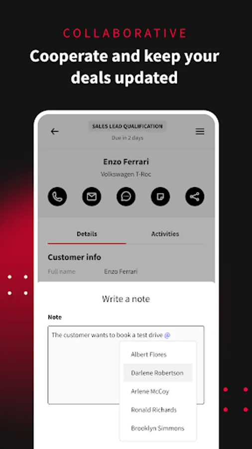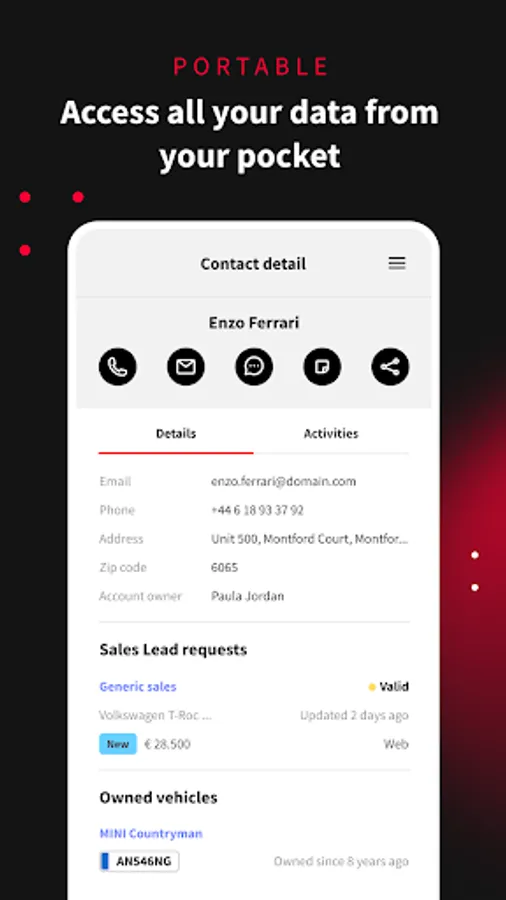 With the LeadSparK app you can manage your leads and negotiations at any time and from anywhere directly from your phone.