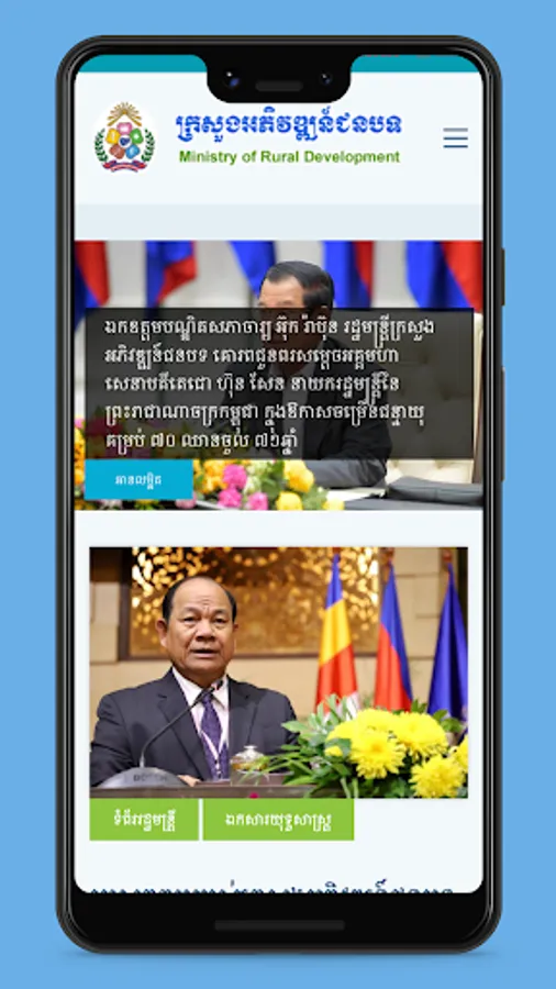 MRD Mobile is a smartphone application to be used by the public to access various information from the Ministry of Rural Development of Cambodia. Within this App, users can easily get alerts on News or Event of the Ministry of Rural Development. Besides this news or event, the App comes with information on the Management Structure of the Ministry and other useful data.