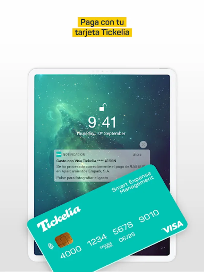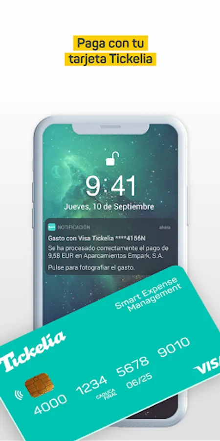 3. Pay with the Tickelia Visa card and automatically receive the movements to easily photograph the ticket.