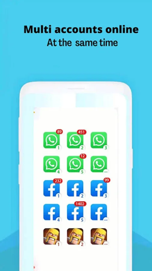 do you want to open multiple app in one phone with dual app helps clone unlimited for and or other social & game accounts and keep online simultaneously on one phone to separate work and life.