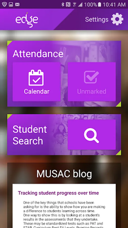 Integrated with MUSAC edge, the current version of the mobile app allows you to view timetables and rolls, mark attendance and search for student and caregiver information.