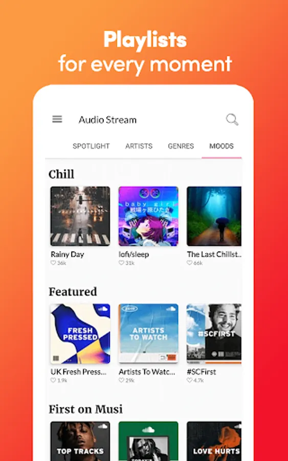 Music Stream is the best cloud-based music collection app which gives unlimited free music in high quality audio which you can play in background music player. With free music app you can play online SoundCloud music & local downloaded music in background. This unlimited free music streamer will be your ultimate favourite music stream player in your music apps collection.