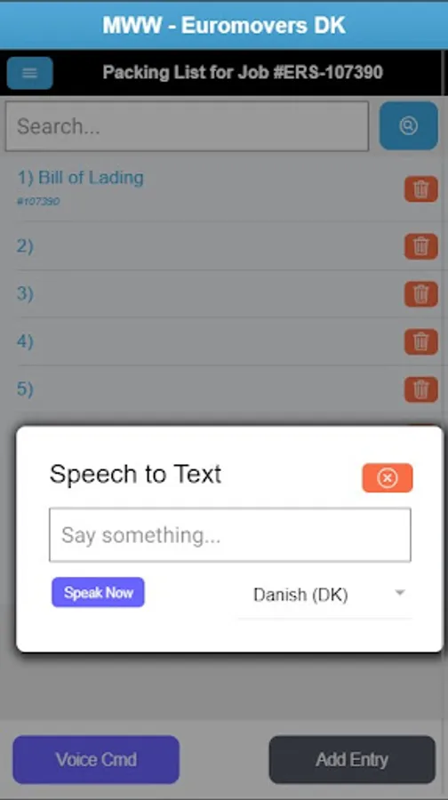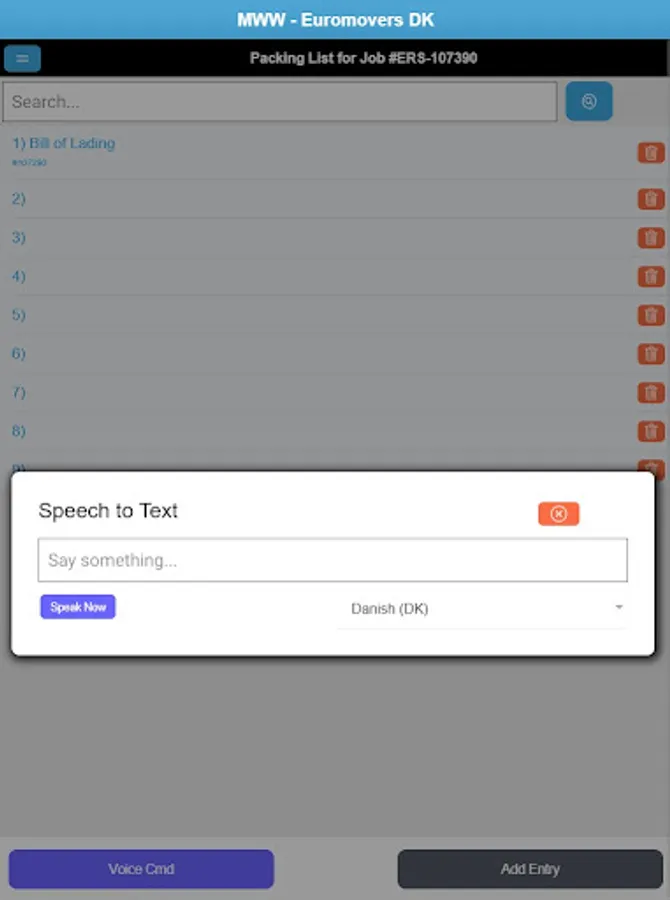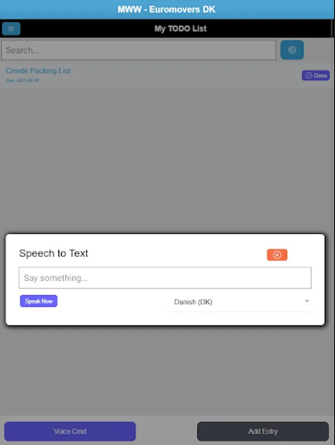 Move Warehouse Web (MWW) App for Euromovers Denmark