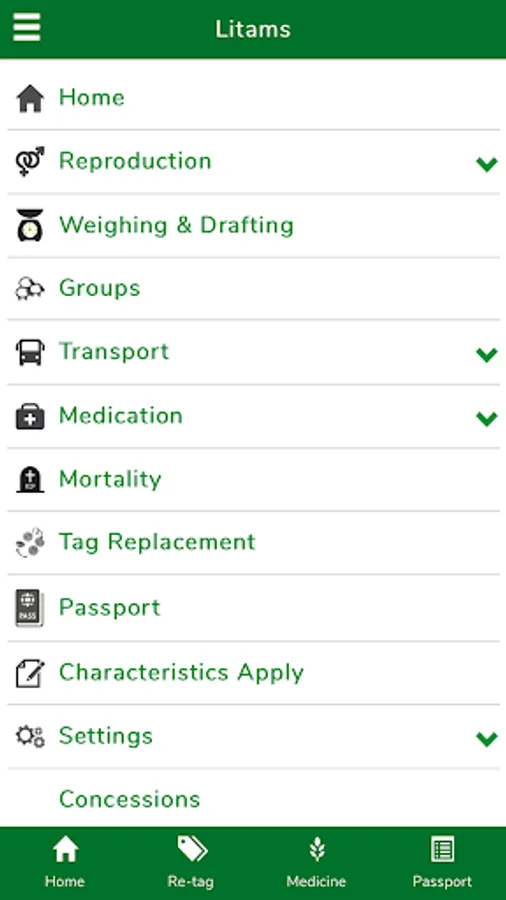 This app is suitable for sheep, goats, pigs and cattle, who have been (electronically) tagged with unique numeric identifiers. (Alfanumeric, visual identifiers can be linked to any ID). Data is stored safely in the cloud. Subscribers can access all data via the app, as well as via a browser.