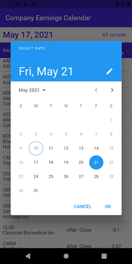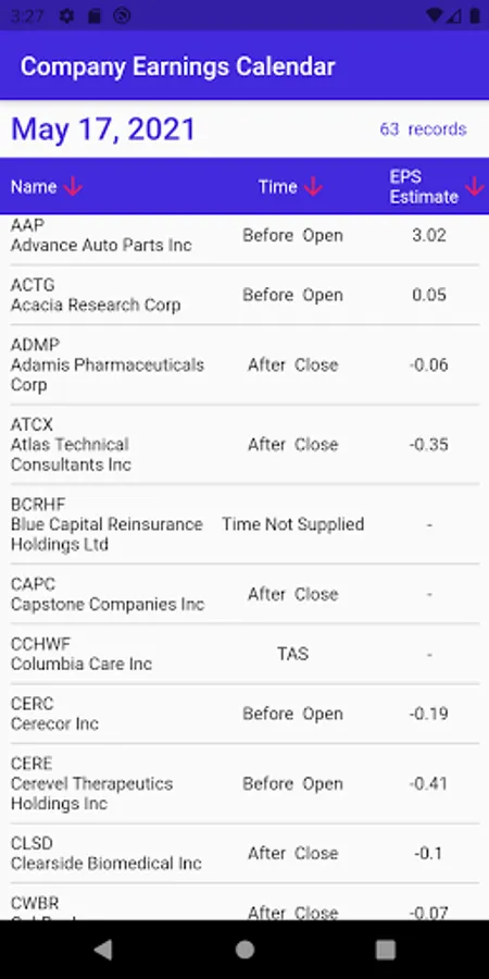 Yahoo finance page for the stock associated with the row will popup when you press any row.