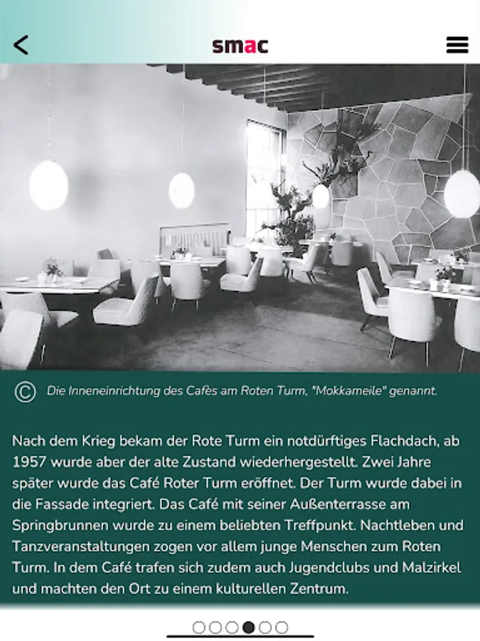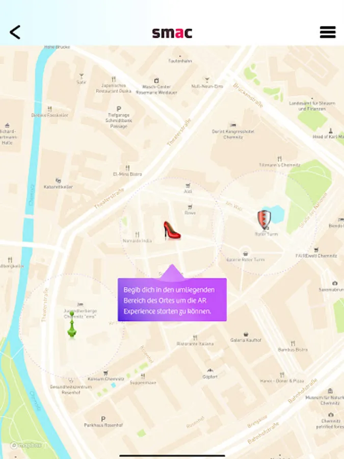 In the Chemnitz.ZeitWeise app developed by smac (State Museum for Archeology Chemnitz), we use augmented reality to show places that no longer exist, but live on in the stories and images of many people. Become part of the story and this app and embark on a journey through time!