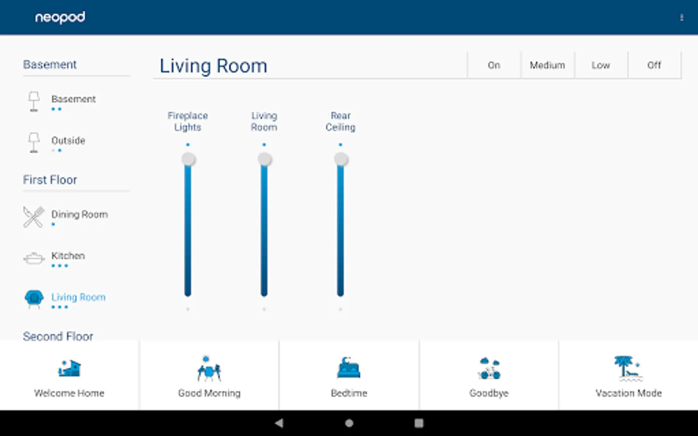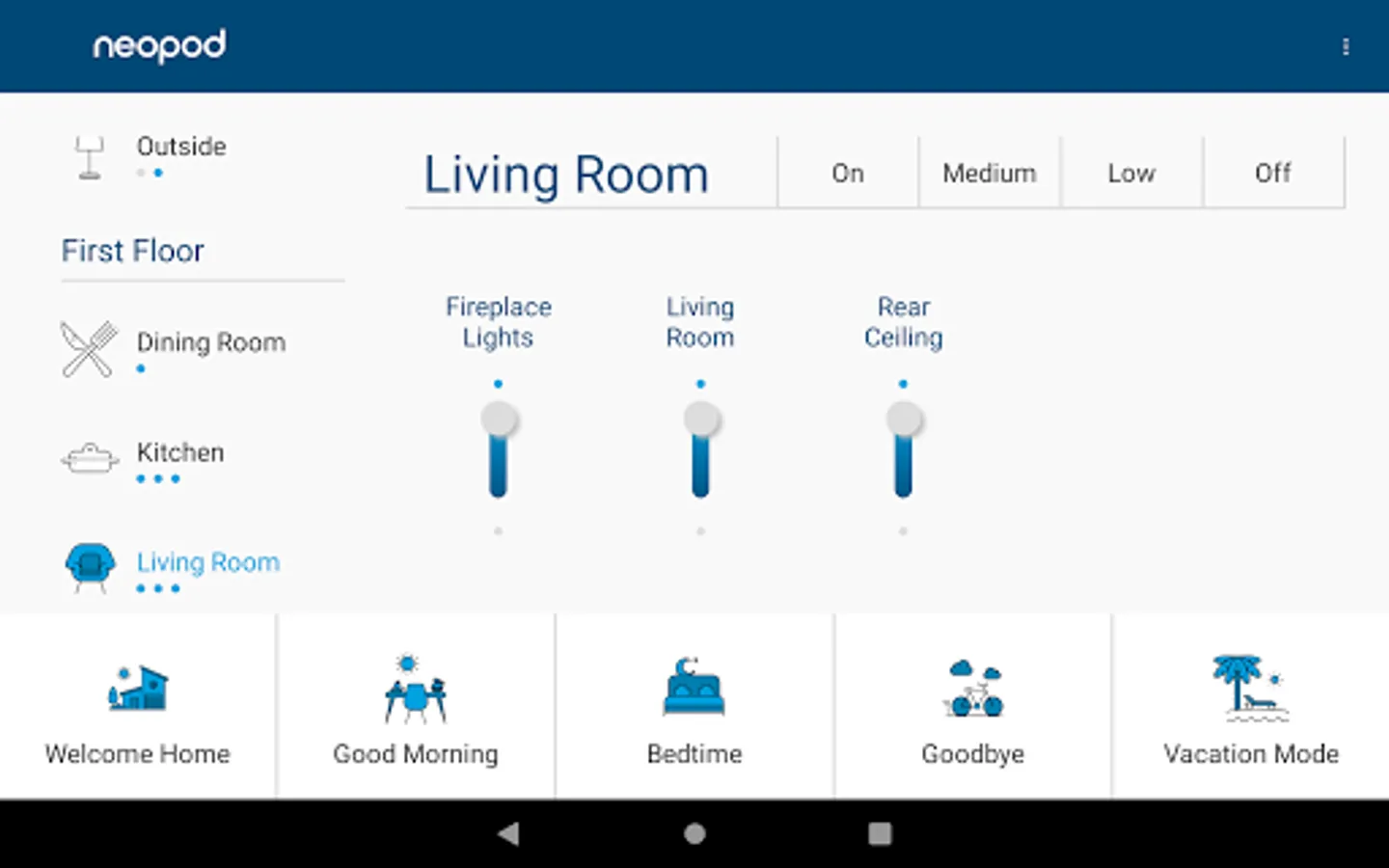 neopod has all the smart lighting features you want built right in. We set it up for you and remotely change any settings you desire. No routines to set up or automations to program. Easy and affordable.