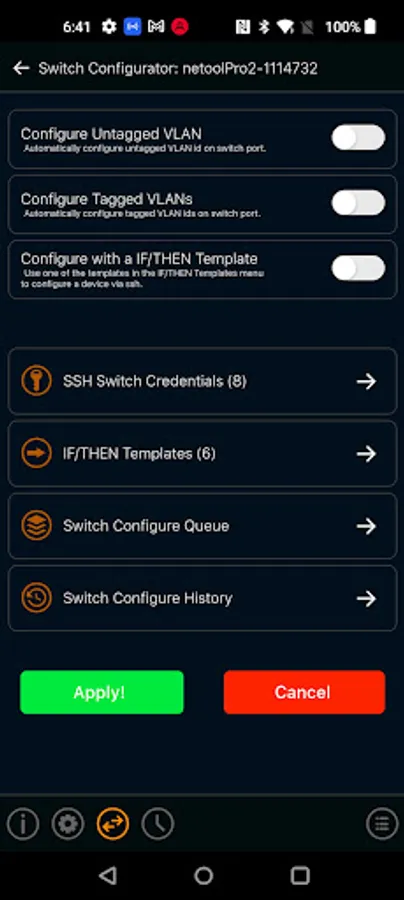 Using ether Bluetooth or Wi-Fi you can connect the netool.io Pro2 app to your netool.io Pro2 tester and network automation tool. The netool.io Pro2 is not just faster but more reliable which means we had to write a new app for the new hardware to get the speed and reliability we needed.