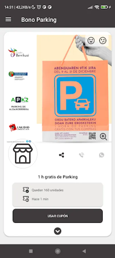 In addition to these fixed sections, there will be other temporary ones, which will allow users of the app, for example, to participate in a gymkhana to vote for the best Christmas showcase and participate in a raffle and enjoy one hour of free parking by making purchases at Laudio .