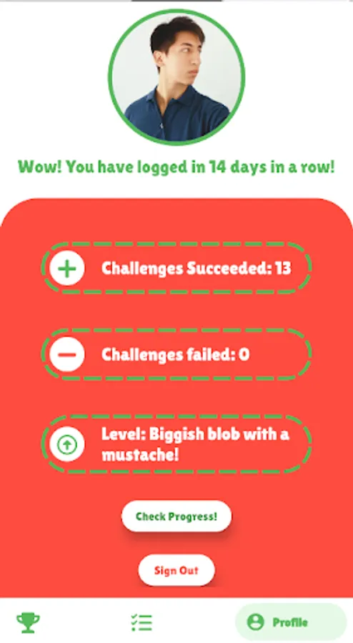 This app puts an end to all this. With areas that anyone would benefit from improving and with challenges that are achievable but not easy, you can turn yourself into a new and improved person