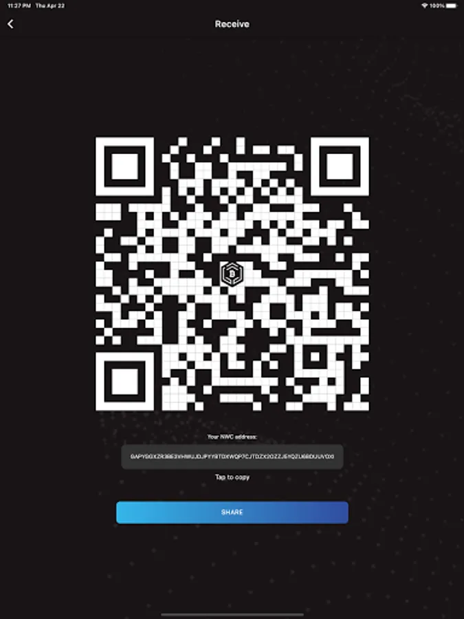 Receive and send NWC in a few easy steps using text addresses or QR codes.