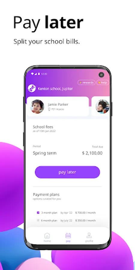 Pay later - split the school's bills. Get flexible monthly plans to suit their budgets