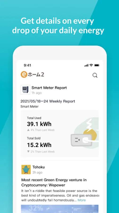 eホーム2 can let you easily confirm the electricity sold in real time and send you notifications when electricity sold are less than amount your set.