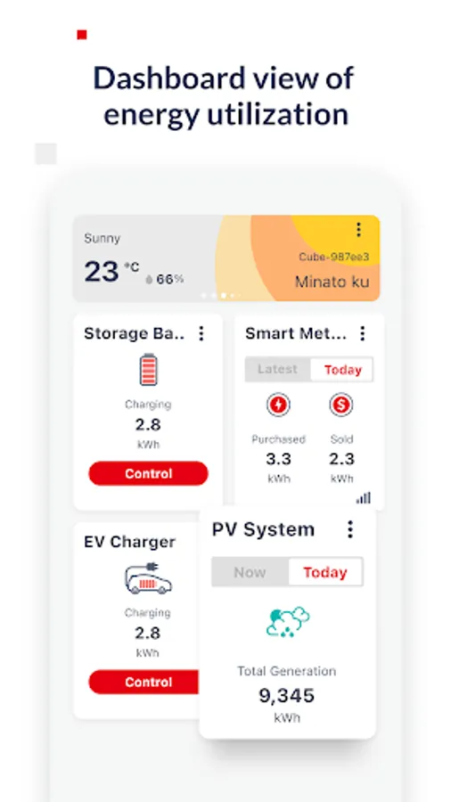 By using this app, you can check the status and operate the solar power generation system, storage battery system, and various home appliances. In order to use this application, HEMS sold separately is required.