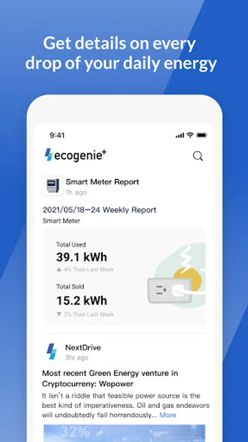 News feed delivers upgraded experience to easily manage your electricity data. The UI card design helps you control smart home appliances with a single tap on your smartphone.