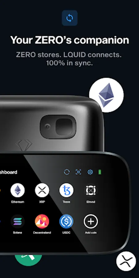 Sync your LIQUID app to your ZERO hardware wallet and check in real-time your crypto accounts while your keys remain securely offline. Hot speed, cold security.