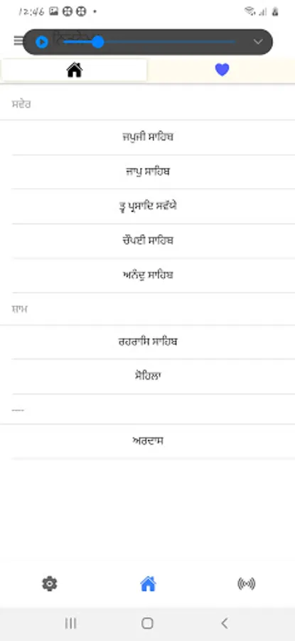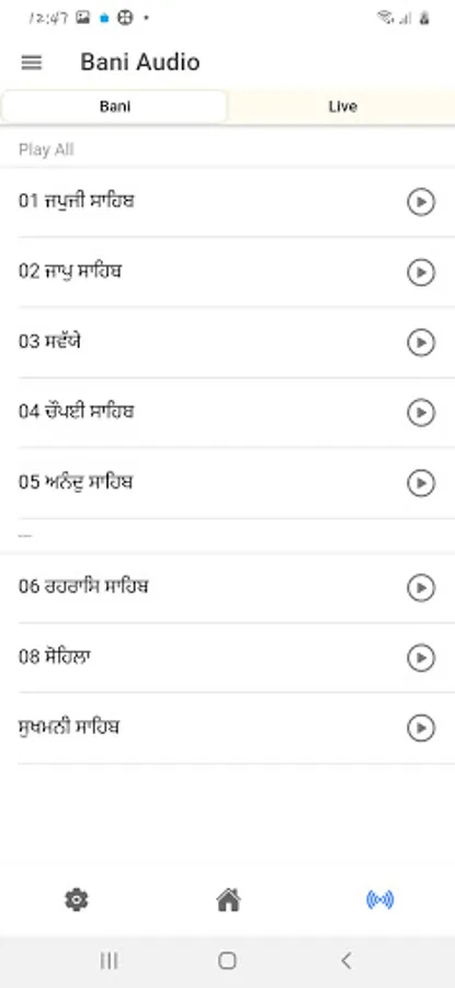 Nitnem bani's usually include the 5 bania which are read daily by baptised Sikhs in the morning between 3:00 am and 6:00 am (this period is considered as Amrit Vela) and Rehraas Sahib in the evening 6pm and Kirtan Sohila at night 9pm plus this app includes audio facility for the listeners and also Live Radio of Katha, Kirtan and Akhand Path.