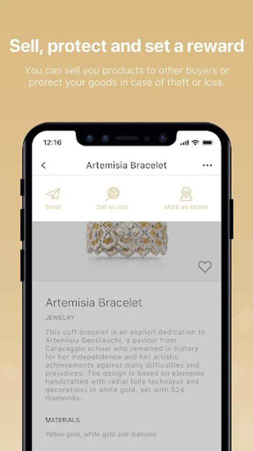 You can access your personal gallery of luxury goods, the original product information and see the previous owners.