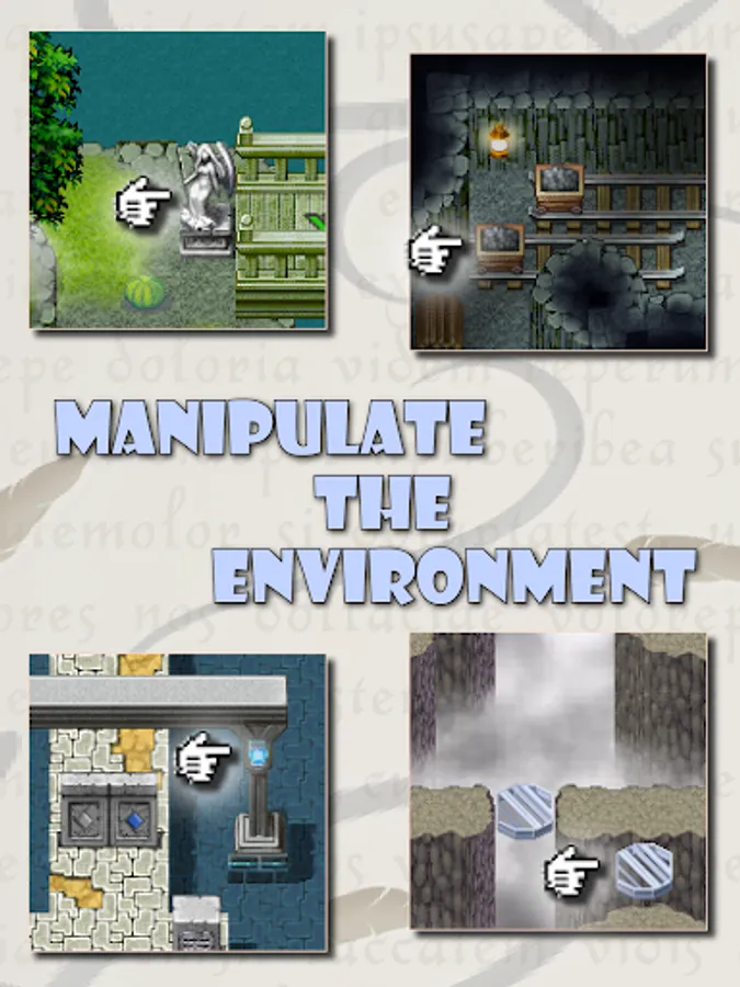 Manipulate the environment,beat puzzles, solve minigames and complete sidequests to allow the hero advance on the path of fate. Use all your mental sharpness and logic reasoning to succeed.