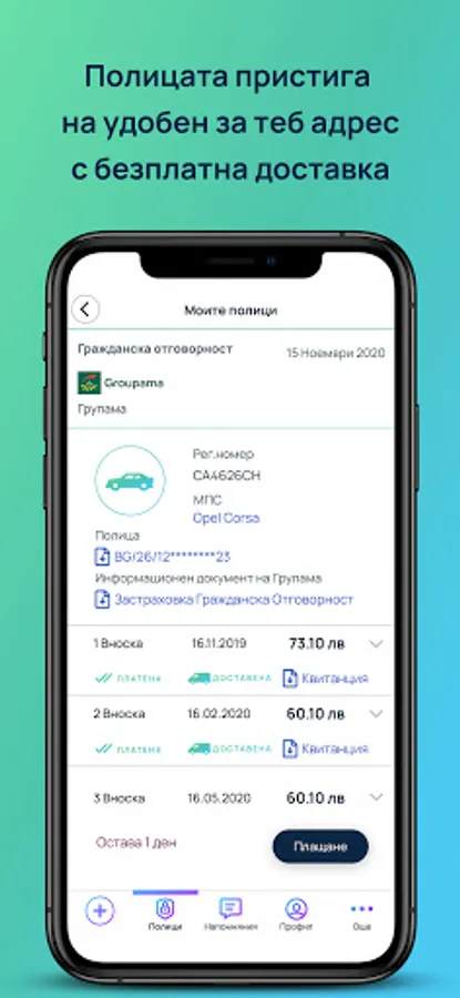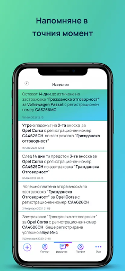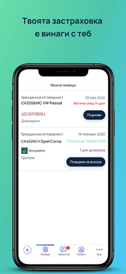 Reminder always at the right time: With Nu INS you will always have valid insurance. We will make sure to remind you of an upcoming installment or to renew your policy if it expires.