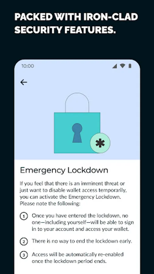 From end-to-end encrypted chat to the ability to set up an inheritance plan without relying on proofs of identity, we invest in our tech stack to offer you maximum privacy. Always.