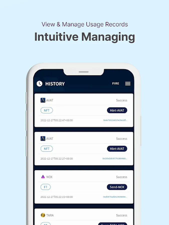 You can manage various NFT 『AVATAR』 and provides functions that you can use to search or manage the history of usage.