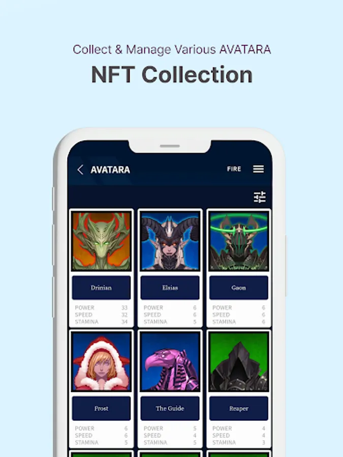 NFT 『AVATAR』 can be freely traded and you can obtain digital assets either through web mining or exerting powerful performance by equipping them in the game to obtain even more digital assets.