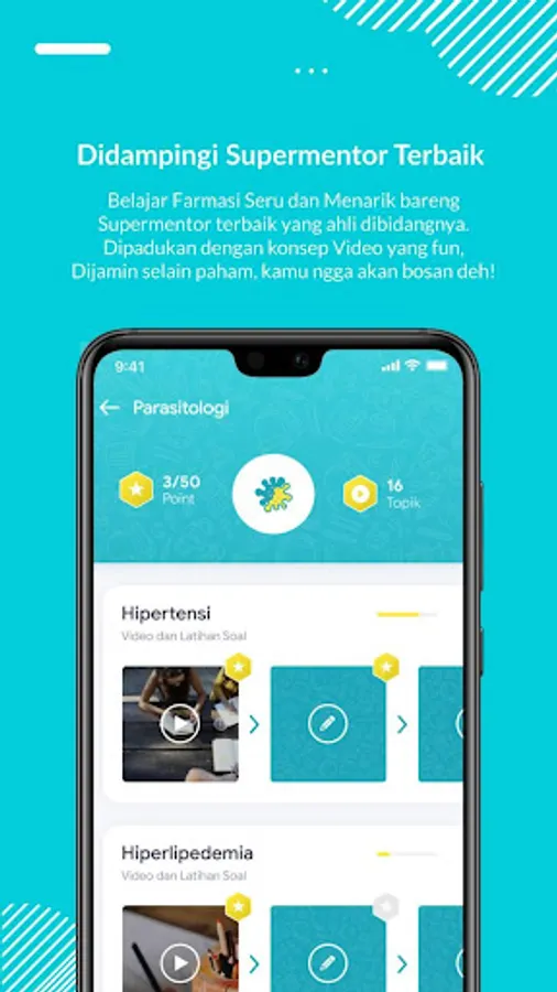 Watch Hundreds to Thousands of animated learning videos and discussion questions for SMF, D3, S1, Apt and Pharmacist Practitioners and TTK with a duration of 5-10 minutes per video.