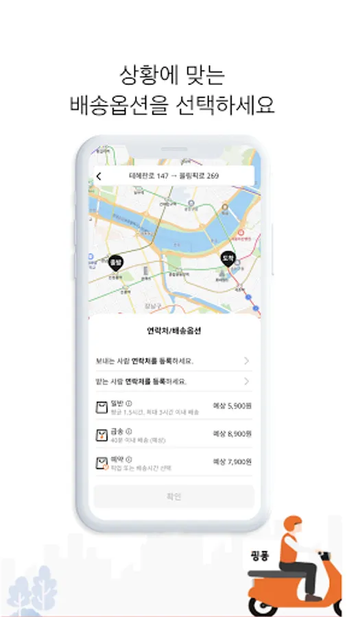 - General: Delivery within 1.5 hours on average, from KRW 5,900