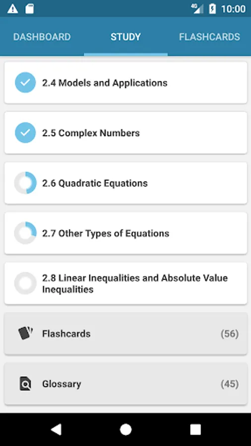 College Algebra provides a comprehensive exploration of algebraic principles and meets scope and sequence requirements for a typical introductory algebra course. The modular approach and richness of content ensure that the app meets the needs of a variety of courses.