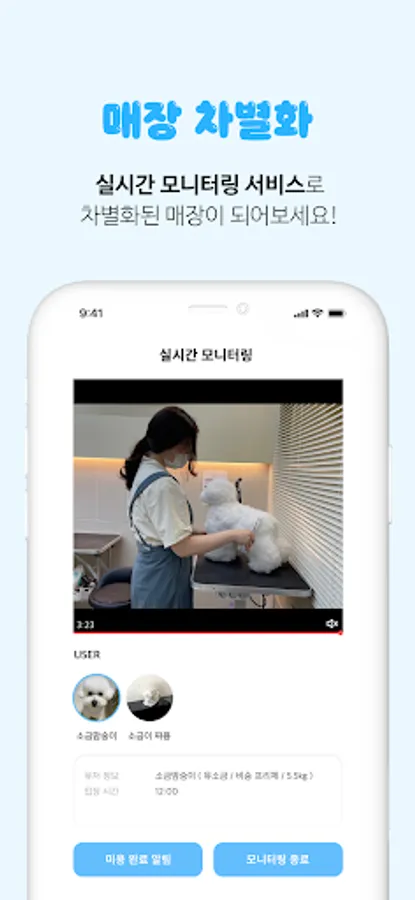 ⏺ You can operate as a dangdaengnau service store by linking the store's CCTV! Through the application, the grooming process can be monitored by the guardian.
