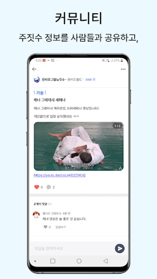 - Community: Talk with jiu-jitsu players across the country on various topics such as training/techniques/questions/dojangs/contests/information! You can supplement the content by attaching images or links.