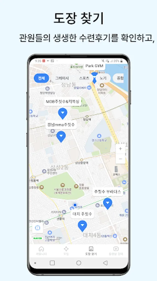 -Find a studio: Find a nearby Jiu-Jitsu studio based on your current location, and check the reviews of the officials! You can also search only the stamps of the category you want, such as Gracie/Sports/Nogi/Comprehensive.