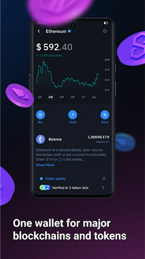 The 1inch Wallet is a versatile and secure self-custodial crypto wallet with a built-in DEX aggregator. It enables users to swap crypto at the best possible rates by automatically optimizing trades across hundreds of DEXes.