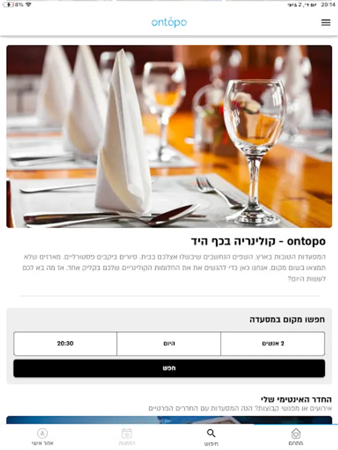 In the past year, we have worked hard to pack everything you need to know what is new and hot in the world of restaurants in Israel. Together with Ontopo's tools for booking space and smart order management - the experience of spending time in a restaurant begins here with us.