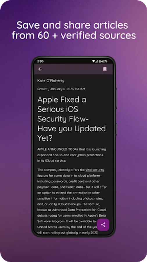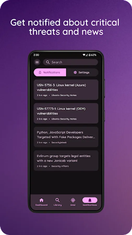 - Save time by getting all the important security news in a single app without having to search the internet or set up alerts.