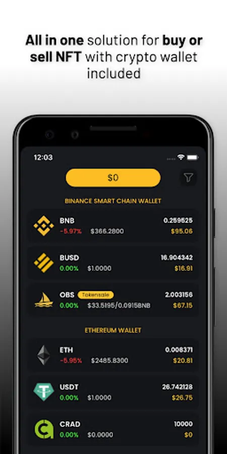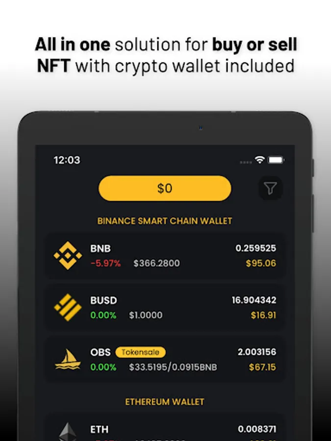 OpenBiSea NFT marketplace is a smart contract, and mobile, web app. It's a simple, step-by-step guided solution to buy, sell and make auctions (smart contract based) for NFT. The main core smart contracts are built on the Binance Smart Chain (BSC) and have an Ethereum bridge for NFT assets.
