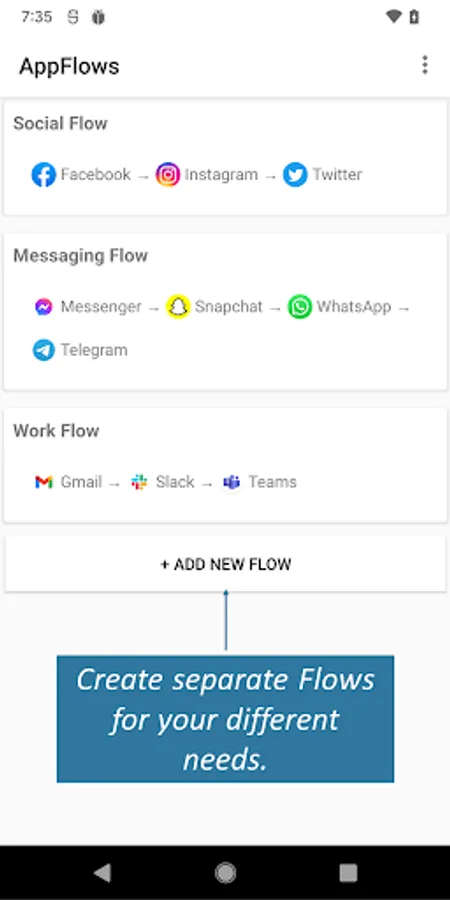 AppFlows enables you to launch your favorite apps quickly, without having to go to the home screen constantly. It lets you directly jump from one app to another using overlay icons or fingerprint gestures.