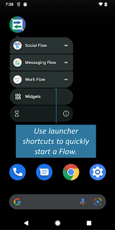 To launch a Flow, you can open this app and tap on it from the list. You can also also create a shortcut of it on your home page for fast access. You can also designate a Flow as your default and launch it by swiping down on the fingerprint scanner.