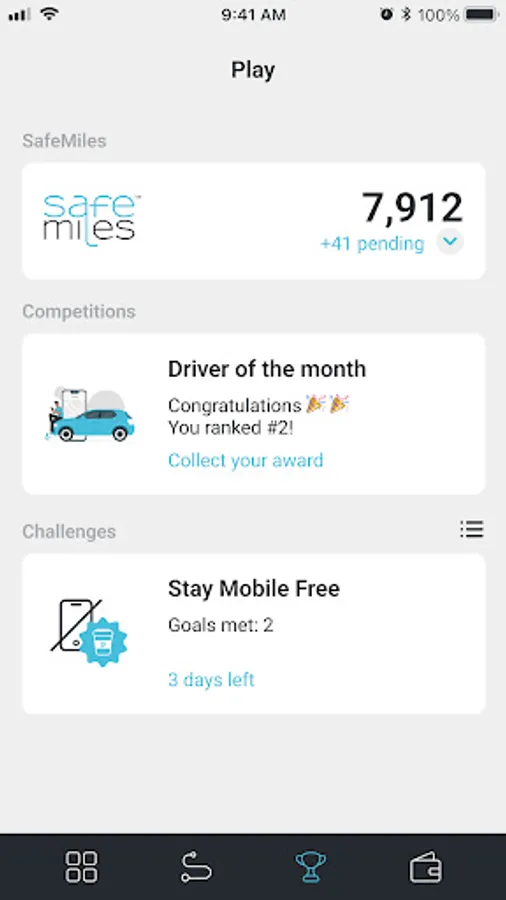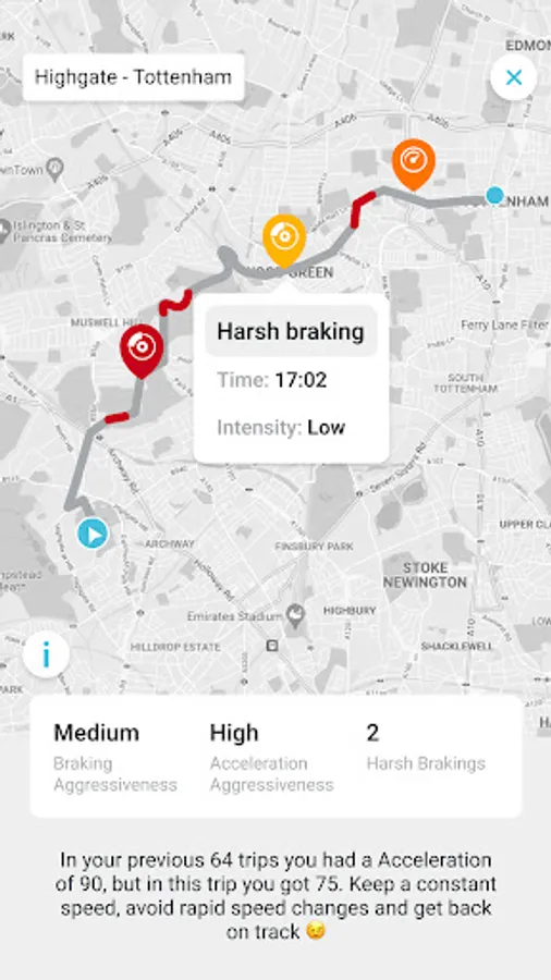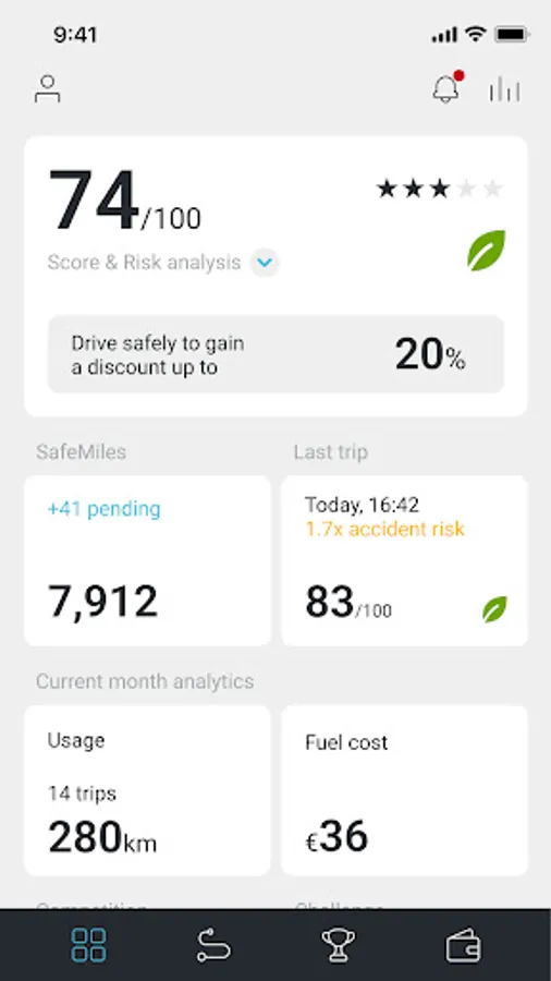 • Get a score based on Speeding, Mobile use (distracted driving) and level of aggressive driving (harsh accelerations and harsh brakings)