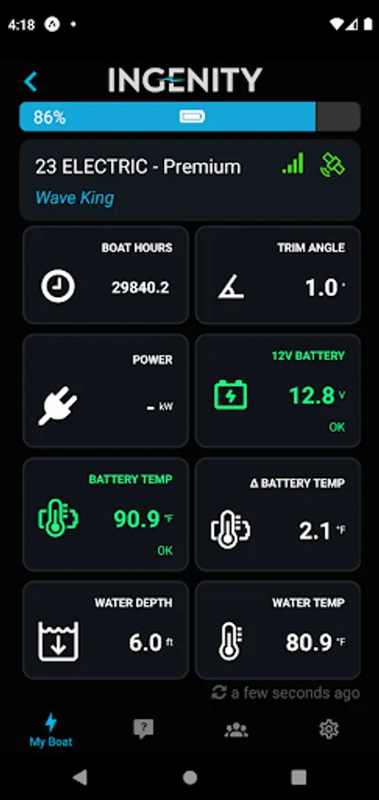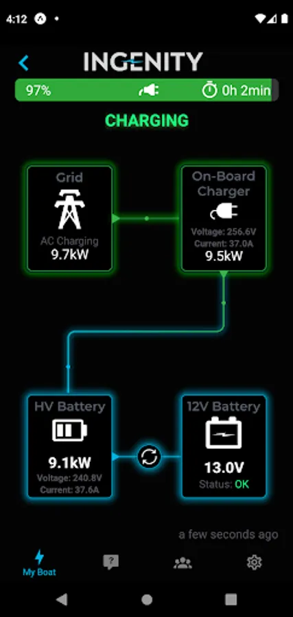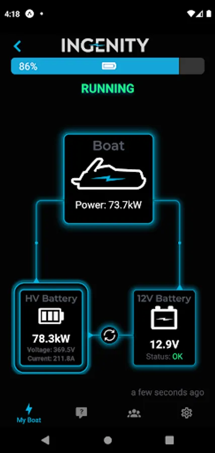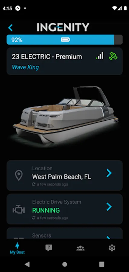 Ingenity Connectâ„¢ is a platform for Ingenity boat owners to stay connected with their 100% electric boat. You can remotely view drive system information, current location, battery voltage, temperatures, and other user-friendly information, as well as use Ingenity's concierge service and learn more about your Ingenity product.