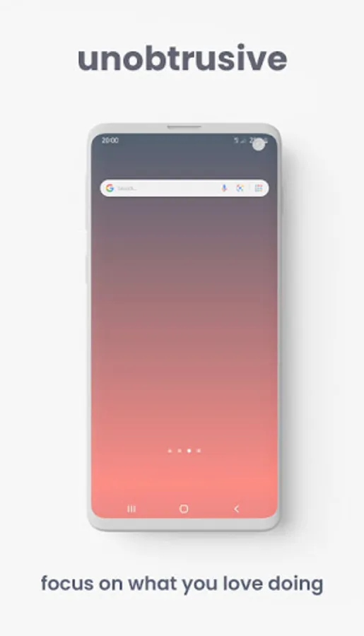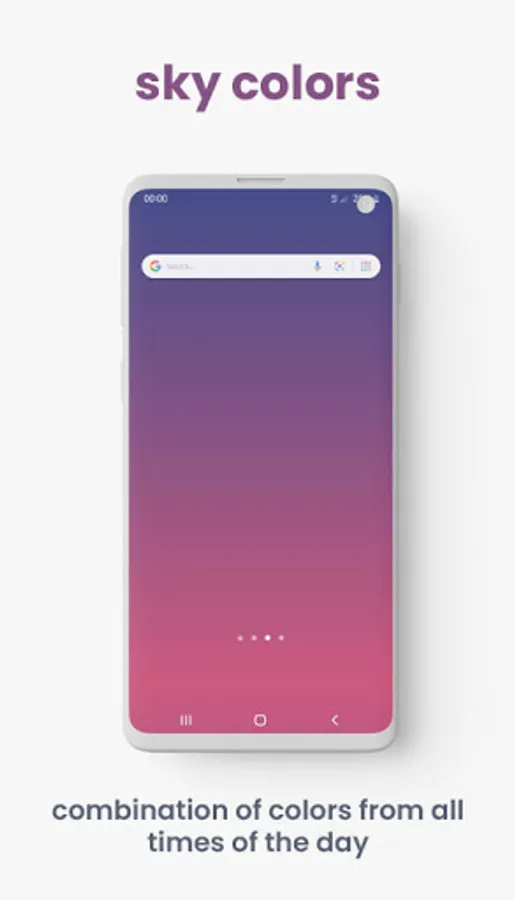 This live wallpaper cycles through calm minimal colors that match the changing of the colors in the sky. It allows for a clean uncluttered phone screen so you can focus on what is important to you. The colors get darker as the sun sets helping to reduce eye fatigue as you unwind and go to bed.