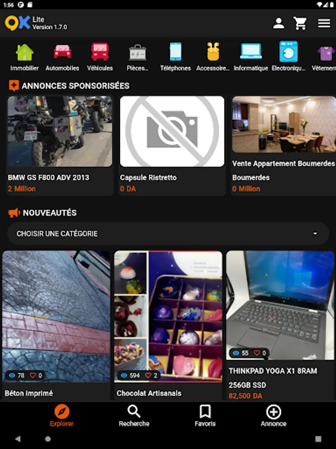 Ouedkniss lite is a minimal classified ads mobile app, has the following features: