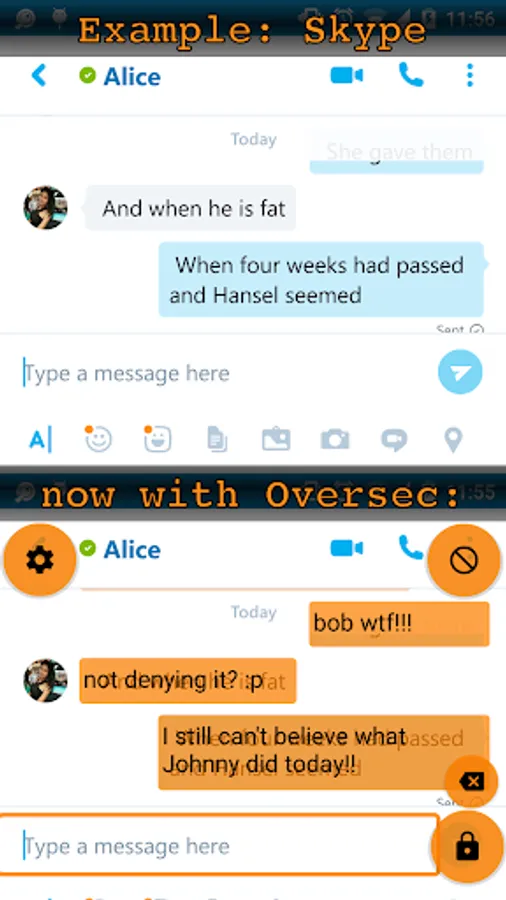 Oversec is completely agnostic of the subjacent app, it works with Whatsapp™, Line™, Snapchat™, Instagram™ or any other chat app. It also supports sending and receiving PGP encrypted messages with the Gmail™ or any other Email app.