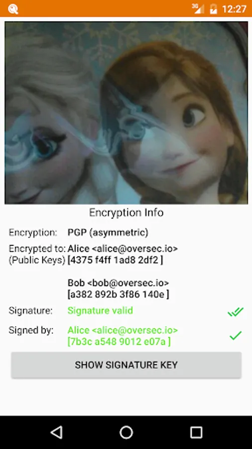 You may also encrypt and send photos through Oversec - its unique camera mode even allows you to take and send an encrypted photo without ever storing the original photo on the device.