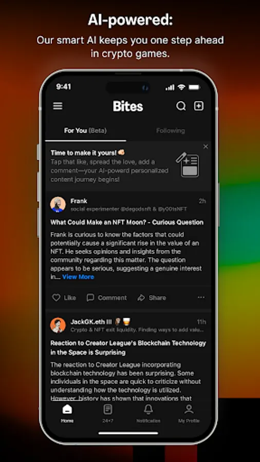 Be ahead of the curve, not just on the curve! Bites is your must-have app for staying on the cutting edge of the cryptocurrency world. Imagine being the first to catch the wave of the latest tr
