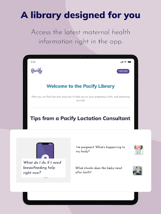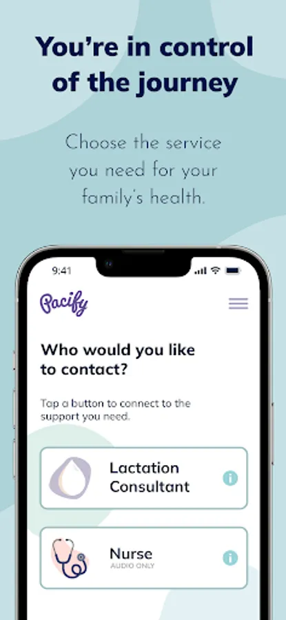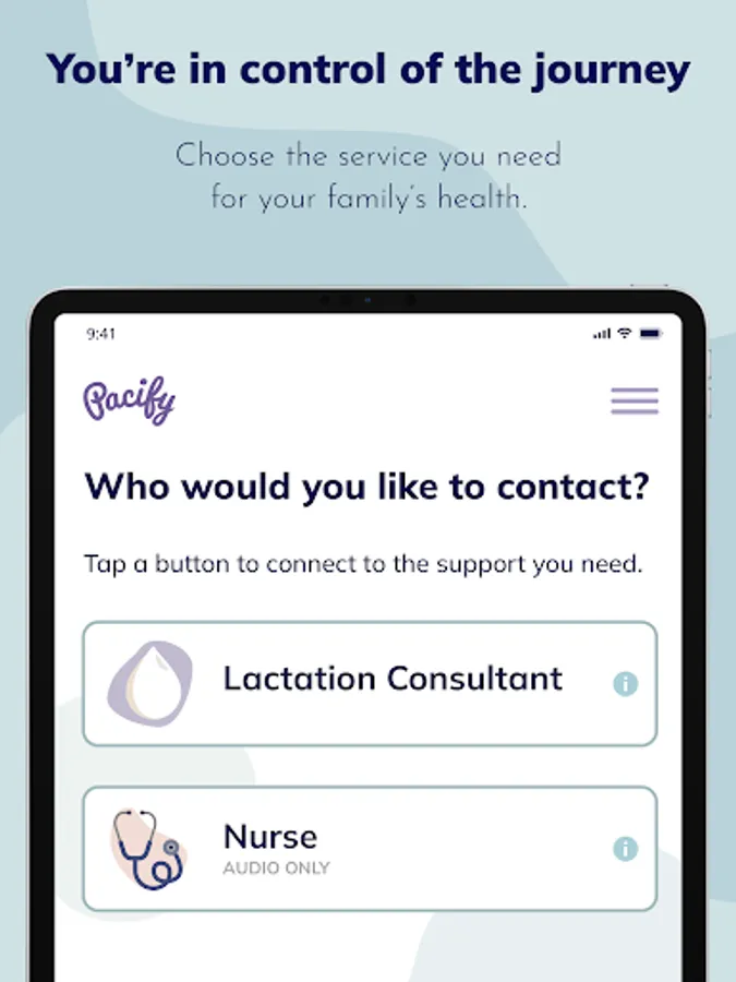 The Pacify app provides on-demand access to a nationwide network of maternal and pediatric experts, available for consultation 24/7 through video and audio visits.