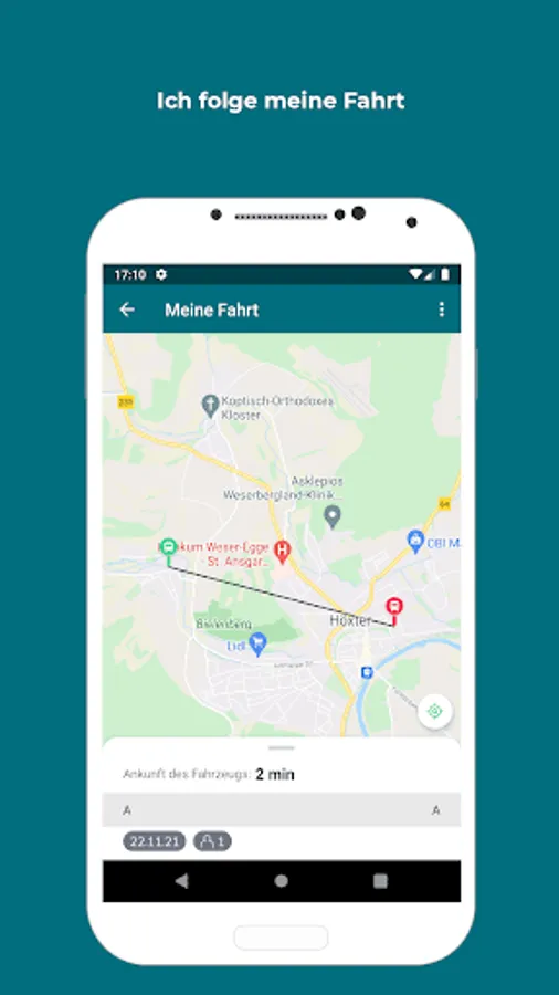 - Barrier-free: Are you dependent on a wheelchair? Simply enter this in the app and we will send you a suitable vehicle. Of course, our drivers are happy to help with getting in and out!