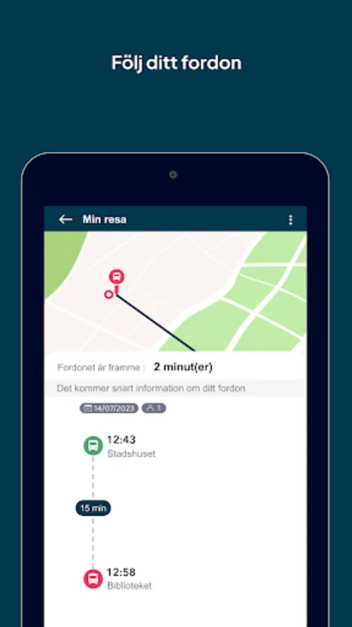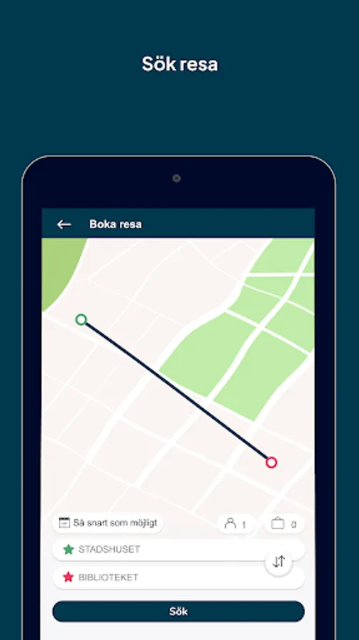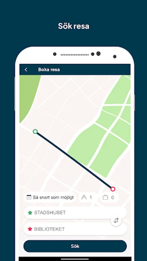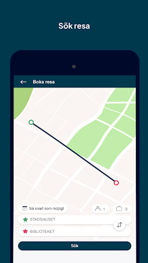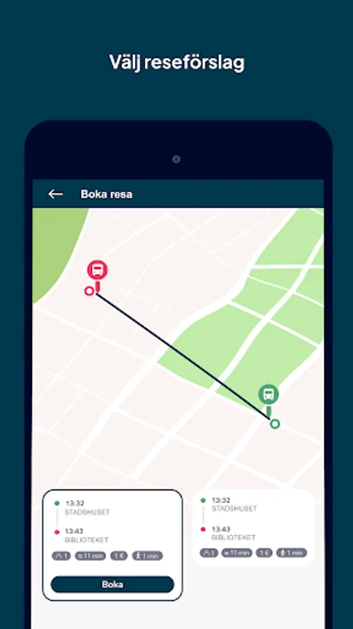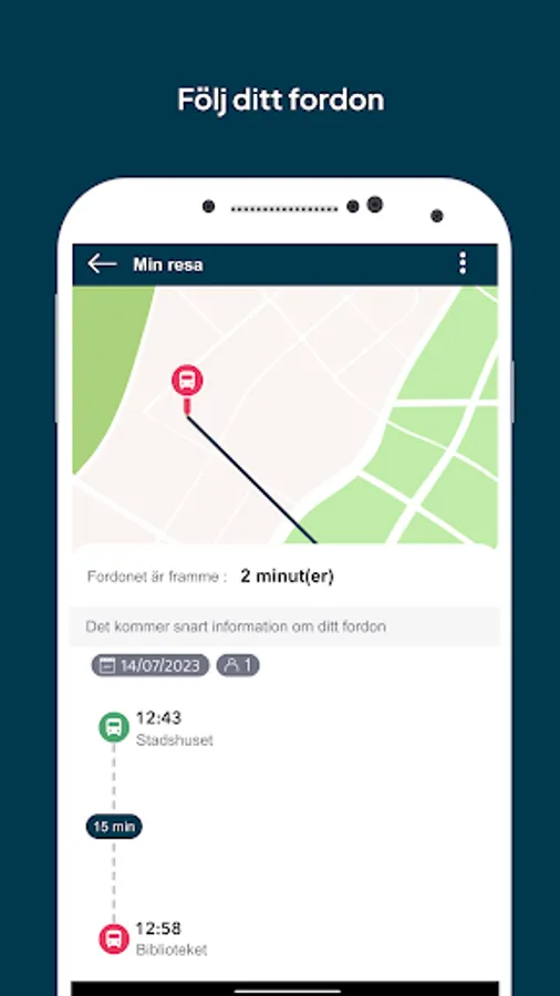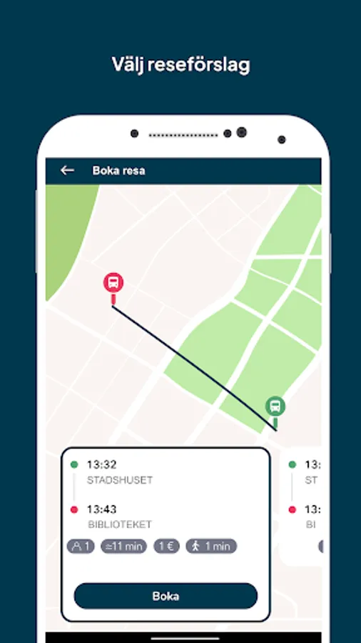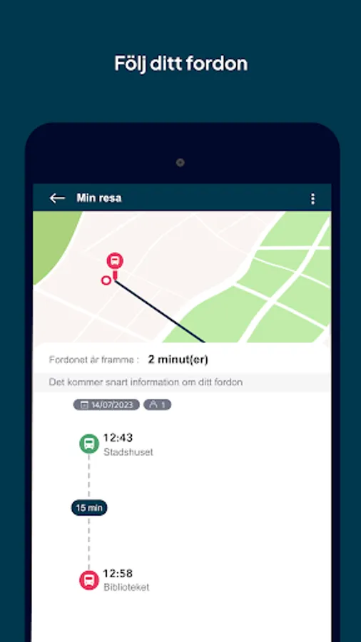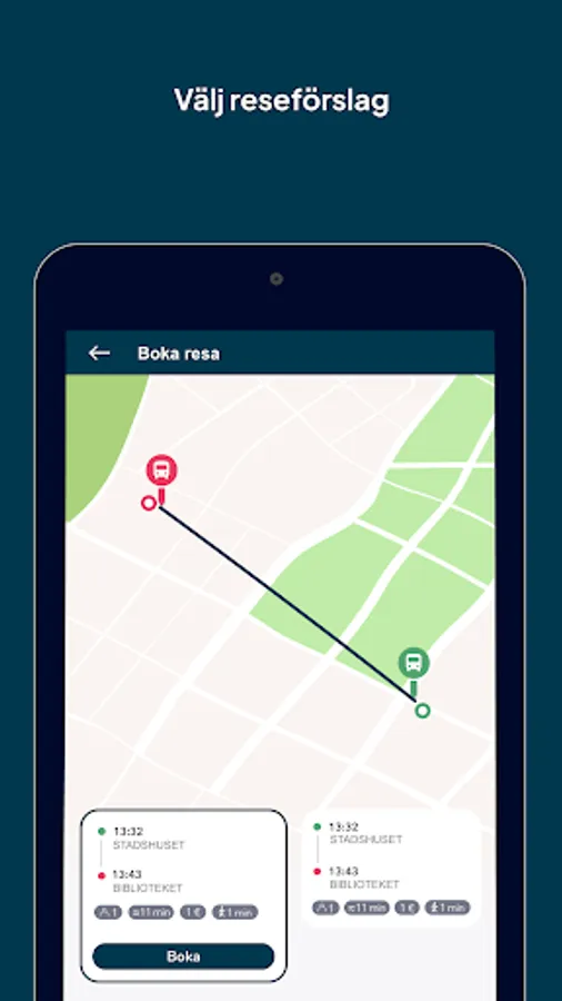 Västtrafik Bus on demand is a test of running smaller buses on demand. There is no fixed route or timetable. You book the trip in the app and choose when and where you will be picked up and dropped off.